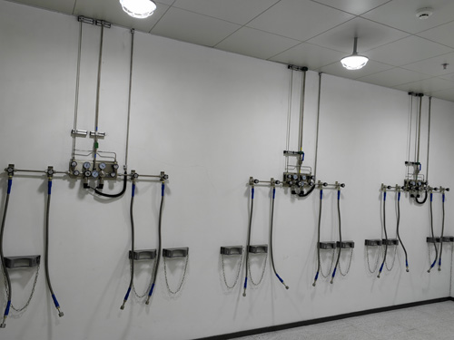 7.氣瓶間內儲存的氣瓶運用帶防倒鏈的氣瓶支吊架固定住,氣瓶支吊架穩固耐穿、大膽大膽。氣瓶支吊架運用鋁鎂合金類拍攝而成。